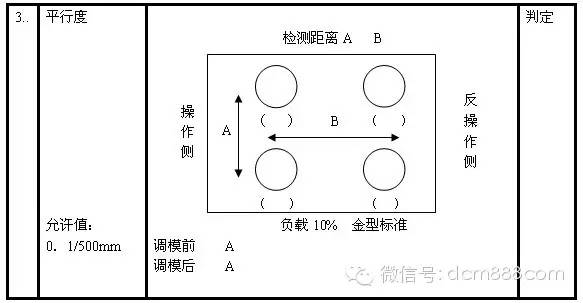 7.2大桿與挪動樣例的查抄。驗測及記實如前所說7.3表格模板形成平行線度專業調劑及查抄(東芝壓鑄機DC350J來說)